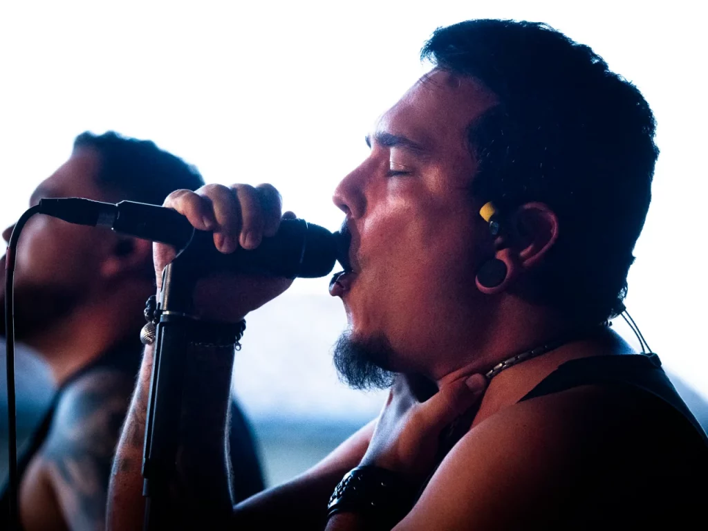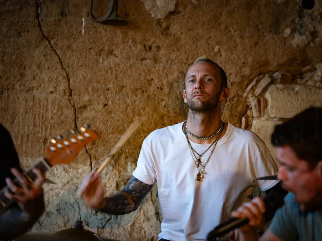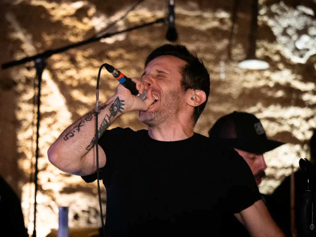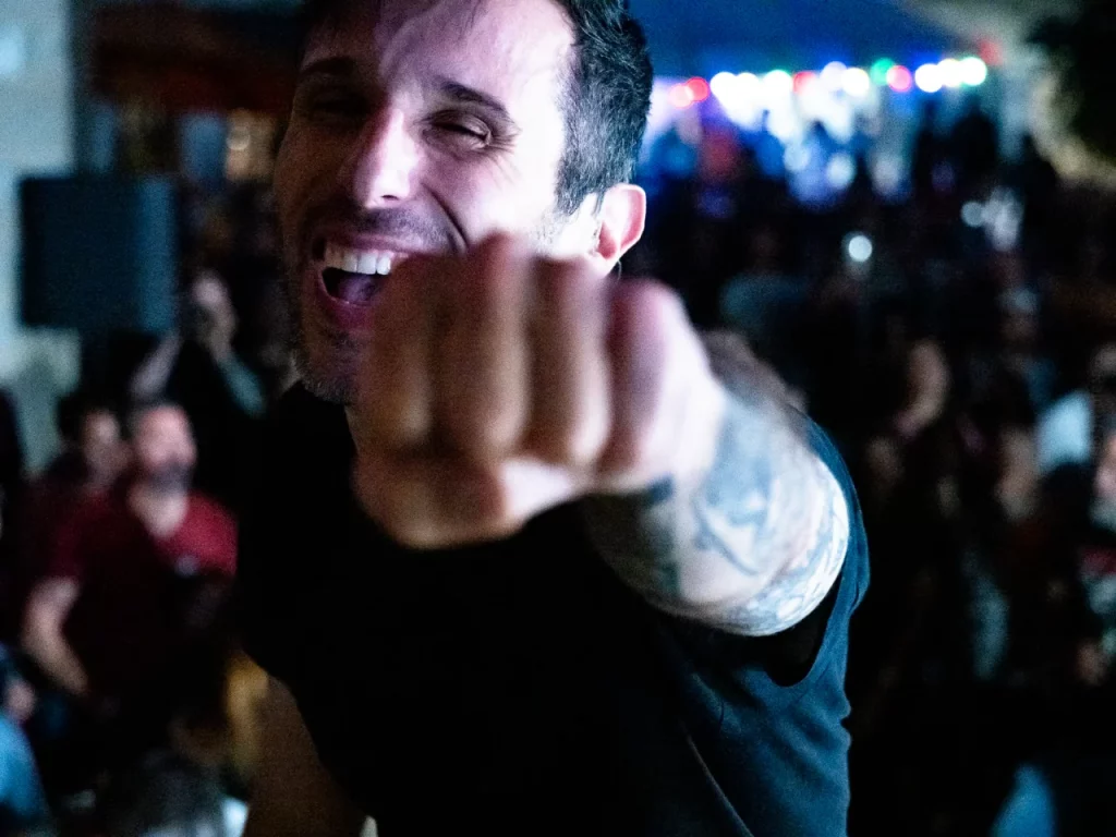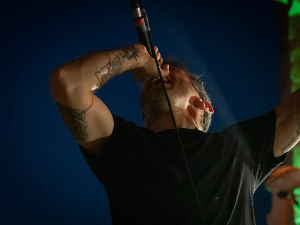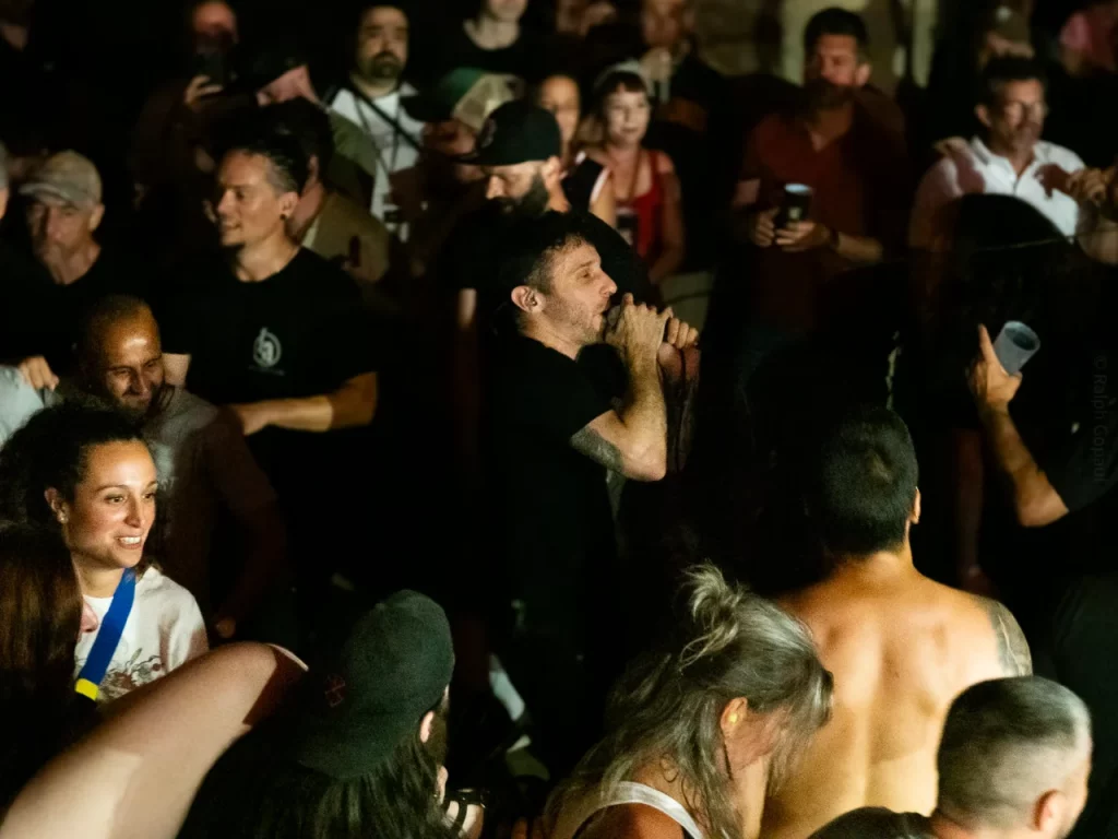 Il est 22 h 08 lorsque TARLD attaque ! Elio lance : « Welcome to the party ! » Puis durant le premier titre, il descend de la scène sur le bar situé juste en dessous puis saute dans le pit avant de remonter ! Sur la suivante Elio redescend et va jusqu’au ring de catch situé au milieu de la cour ! Il compte bien mettre le feu dans le public même ceux éloignés de la fosse ! Je me suis ensuite laissé porté par la folie du set, du groupe et de la fosse quand, à 22 h 48, c’est déjà l’heure de la dernière chanson. « Vous êtes beaux et vous êtes fous ! » puis ils descendent cette fois tous (sauf le batteur, forcément) et organisent un circle pit avec Elio au centre !! Malgré un petit souci technique sur ce titre final (c’est ça quand on tire un peu trop sur les câbles XLR pour faire les fous), ils reprennent le titre et s’organise alors un wall of death spontané sur No place like home. « Merci les amis et à bientôt ! ». Pour conclure, Elio finit en slam porté par la foule. Quelle fin magistrale !! Elio aura passé beaucoup de temps au cœur de la fosse pour le plus grand bonheur du public présent (et le mien, il faut l’avouer).