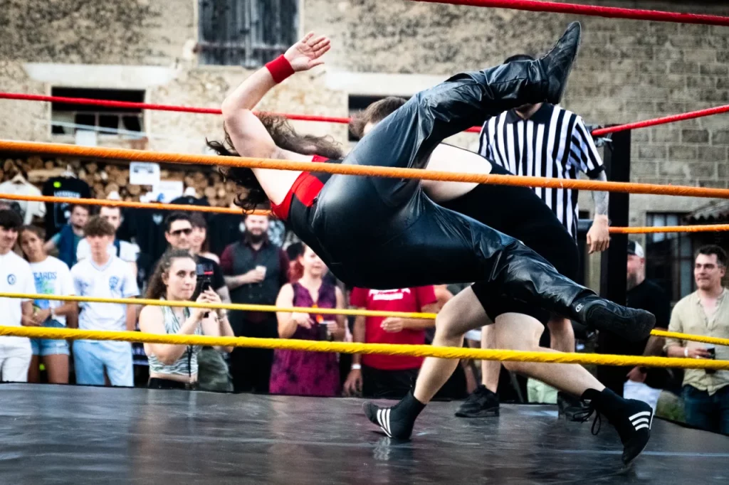 À 20 h 13 du catch est annoncé en interscène ! C’est en effet la surprise annoncée il y a peu par les organisateurs. Ce fut une amusante façon de passer le temps avec pas moins de six catcheurs, un arbitre et un maître de cérémonie, en plus de nous sustenter avec les burgers locaux pendant ce temps.