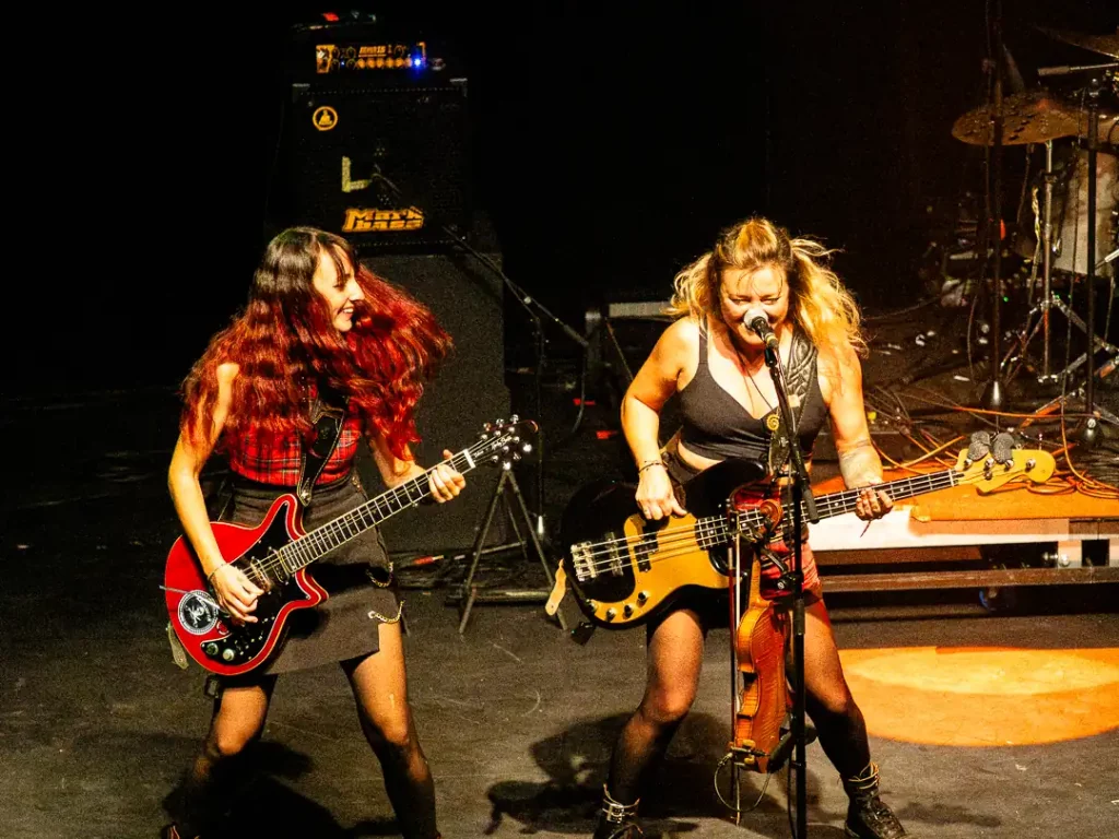 Elles sont, là encore, cinq sur scène : Ella Beccaria au chant et violon ; Elvina Lynn à la basse, parfois violon, et chœurs ; Lucianne Wallace à la guitare électrique (+ banjo occasionnellement) et chant ; Jennifer Gouton à la guitare électrique et au chant ; et enfin, Amélie à la batterie.