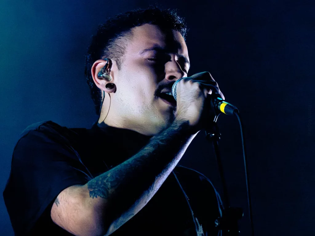 21 h 02 : C’est l’heure de Fall In Place. Sur l’intro du morceau, Titou joue de sa guitare avec un archet et sur le final le groupe entoure Rems.