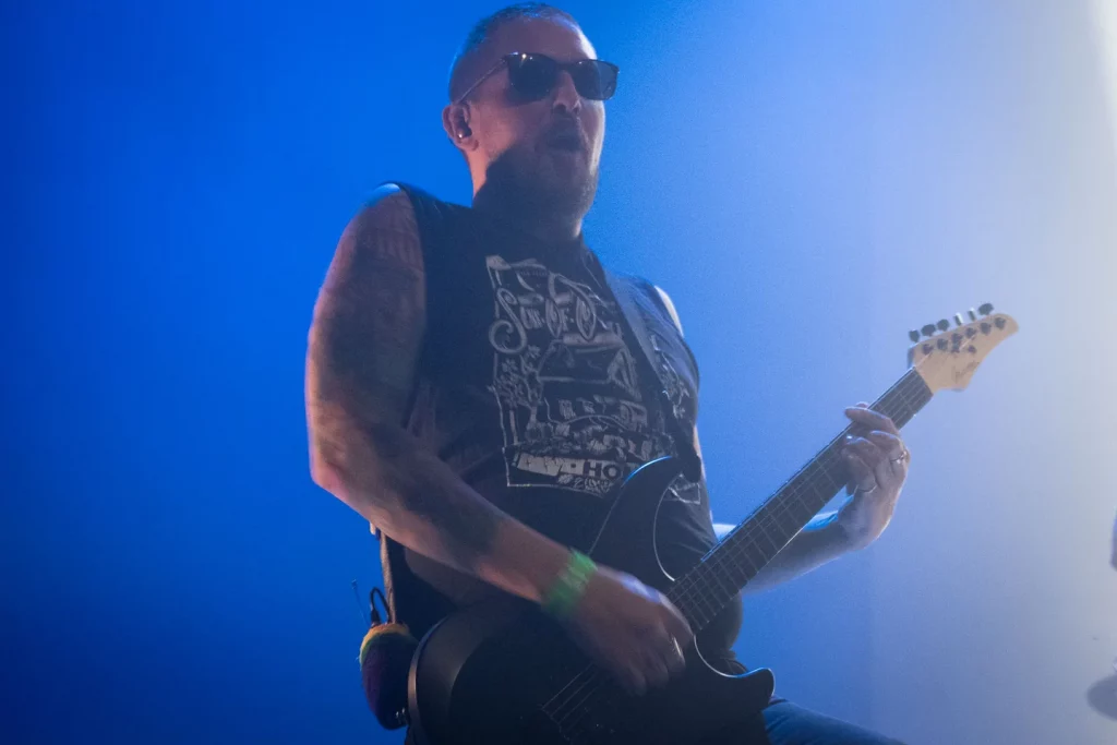 - Thibault Getz porte un t-shirt de son autre groupe Sons Of O’Flaherty. Il assure lui aussi chant, guitare et basse.